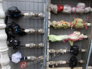 為防止家里的供水設施“被凍”,你可以采取以下幾種方式: ●安裝在室外的水表及水管,可用毛巾包捆;樓頂水箱應蓋好頂蓋,上下進水管及閥門等用保溫材料裹緊; ●如水表被凍住,用熱毛巾包裹,用不超過60℃的溫水澆灑,切勿澆沸水、用火烘烤; ●如水龍頭和水管(PPR和PVC管材)被凍住,可用電吹風烘吹,或用毛巾包裹后用溫水澆淋,同時可取硬物輕拍水管,直到管內(nèi)冰凍消融; ●打開水龍頭,開成滴水狀態(tài)保持流水防止結(jié)冰; ●不常住人的房屋應關閉室內(nèi)水表閥門,打開水龍頭,放盡水管中剩水。